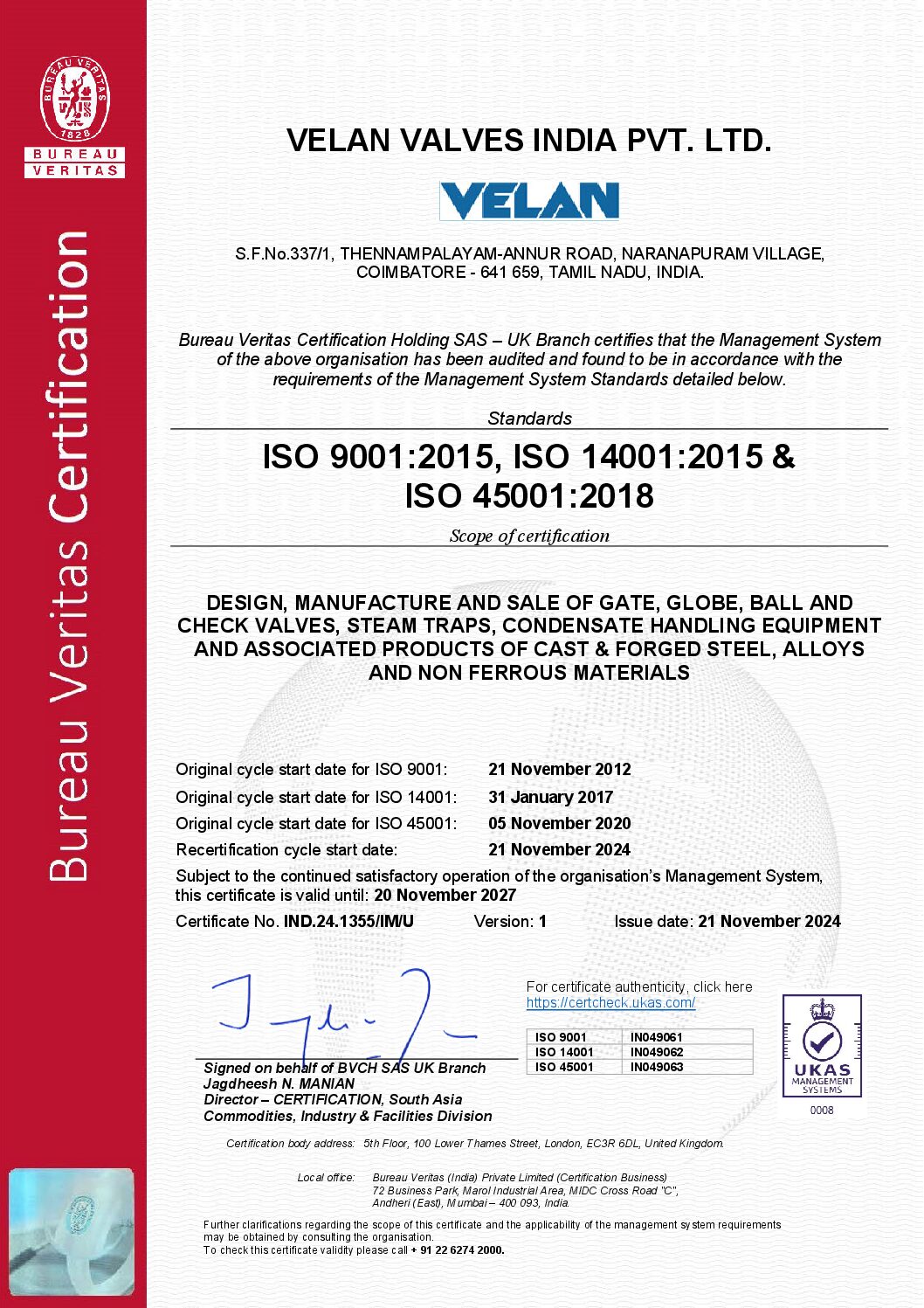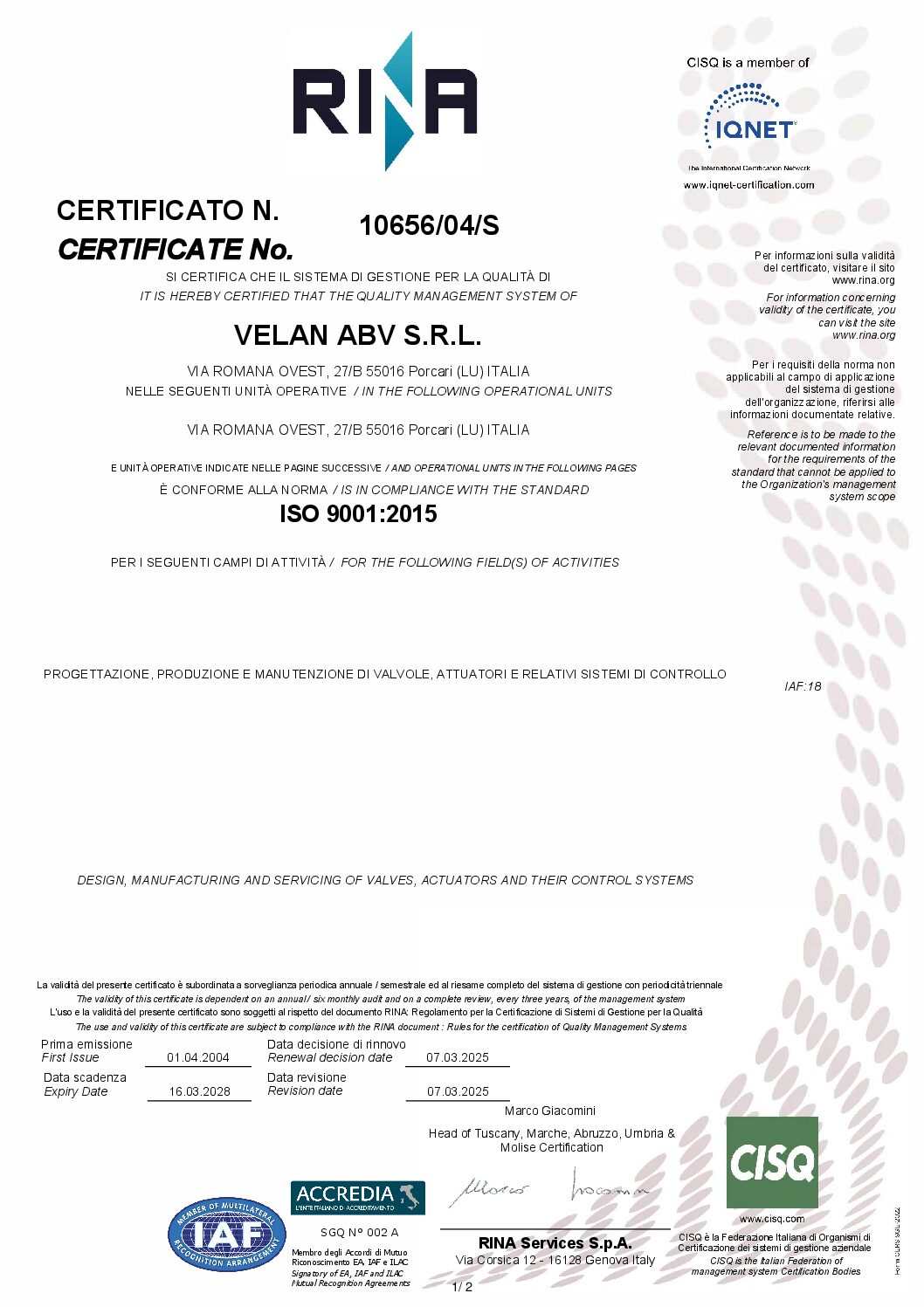 VelCert – Demande de certification Velan