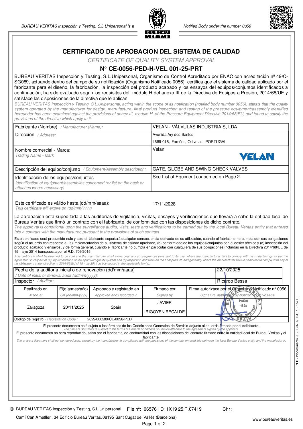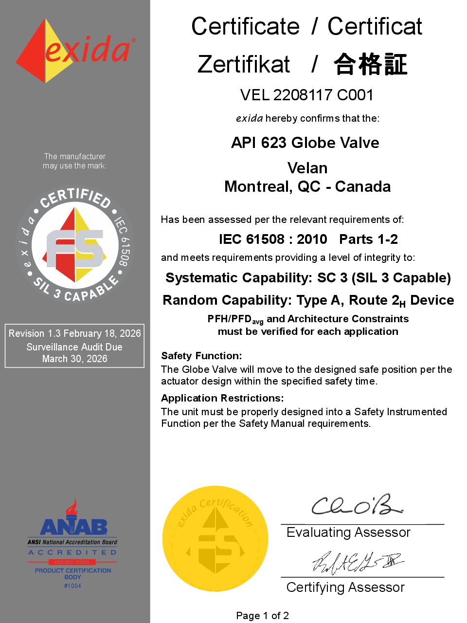 En tant que fournisseur mondial de robinetterie pour services critiques, Velan détient toutes les certifications internationales nécessaires.