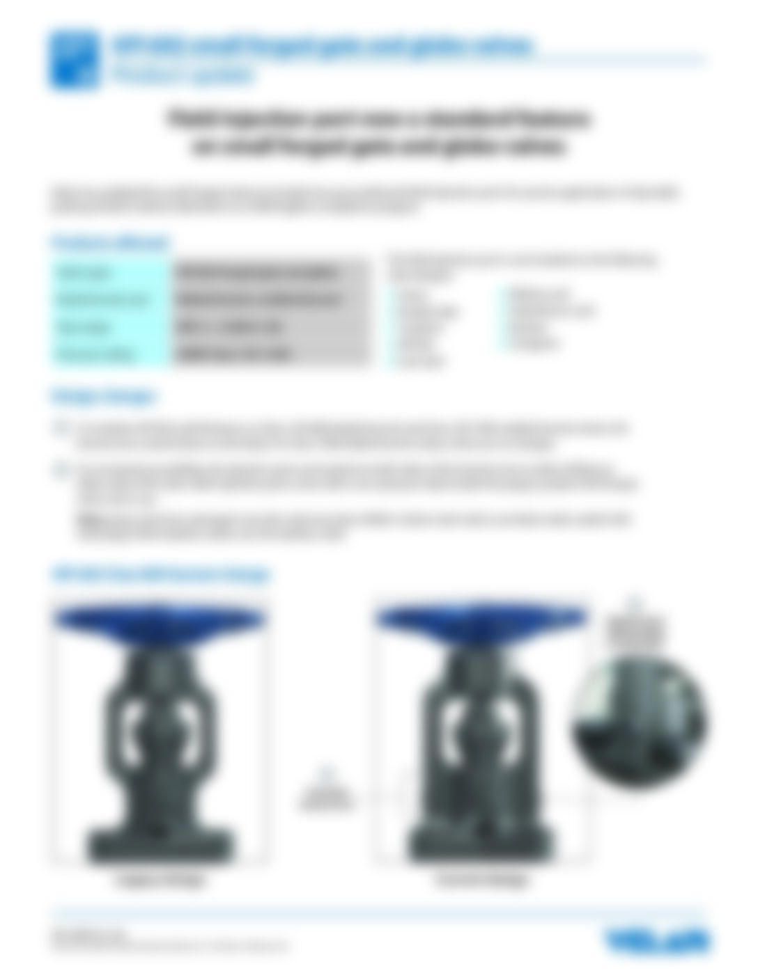 - Pre-positioned field injection ports for precise application of low emissions (Low-E) injectable packing through the bonnet (applies to bolted bonnet globe NPS 1/4–2 (DN 8–50) Class 150–1500).
