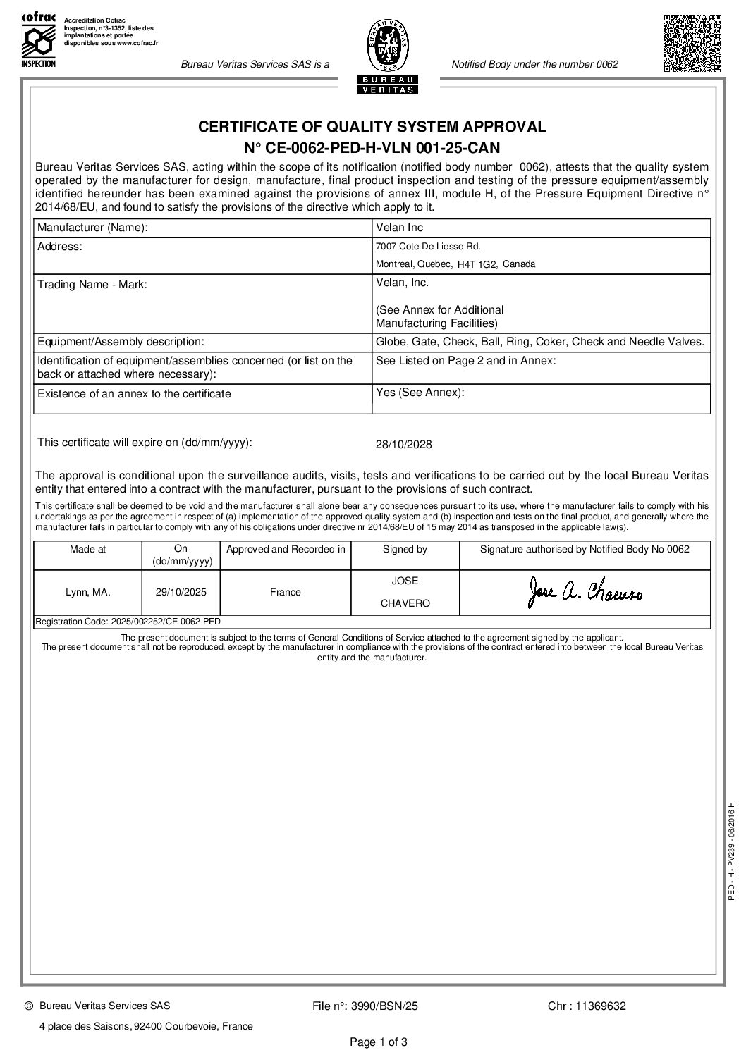 Velan is firmly committed to delivering products and services that consistently exceed customer expectations. Our products are certified by major certification or accreditation bodies to ensure performance and compliance with applicable codes, standards, directives, and legislation. As a global supplier of critical service valves, Velan holds all the necessary international certifications.